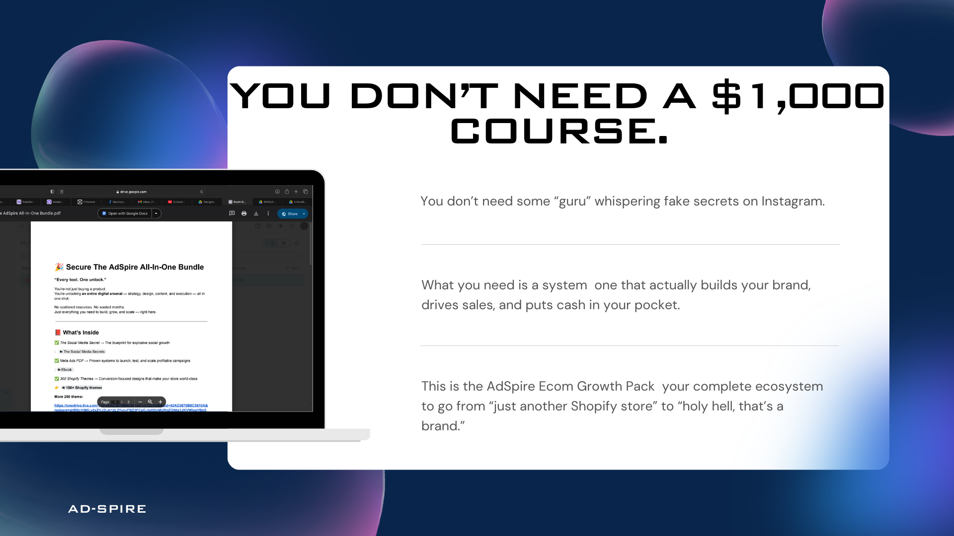 Introducing the Ad-Spire Ecom Growth pack. Where creativity meets conversion, and beginners become brand owners